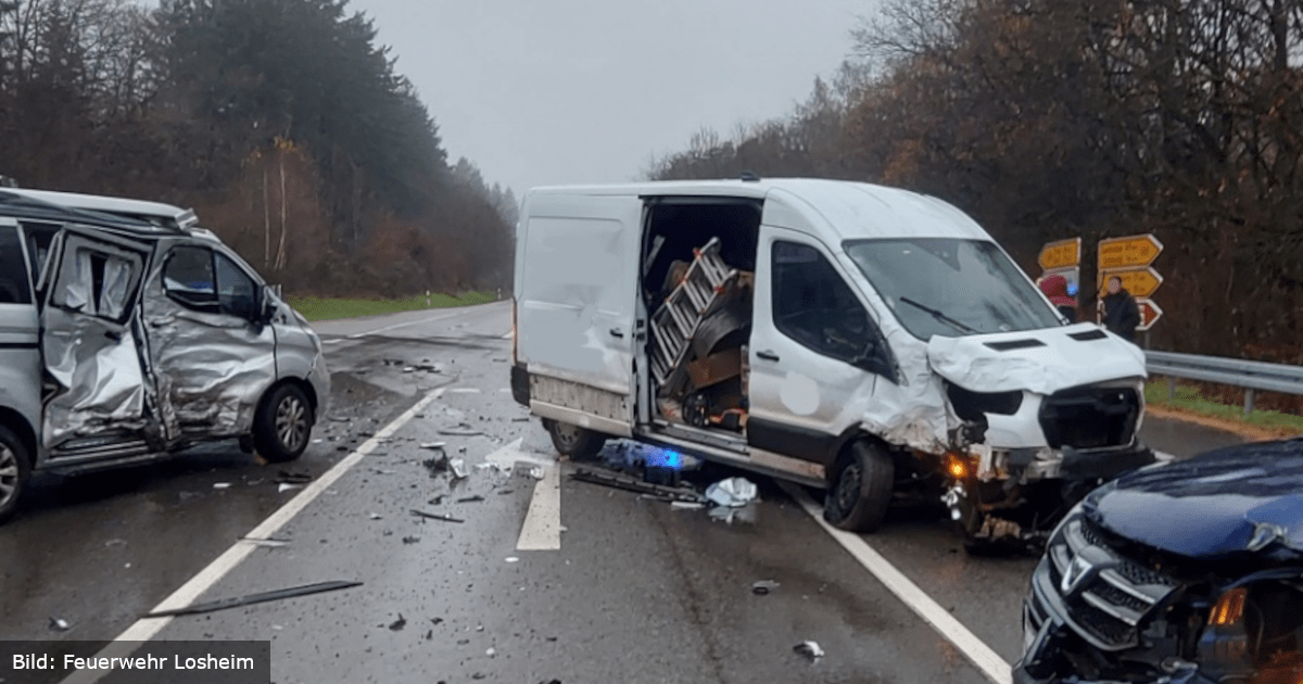 Drei Fahrzeuge kollidieren auf der B268 bei Losheim