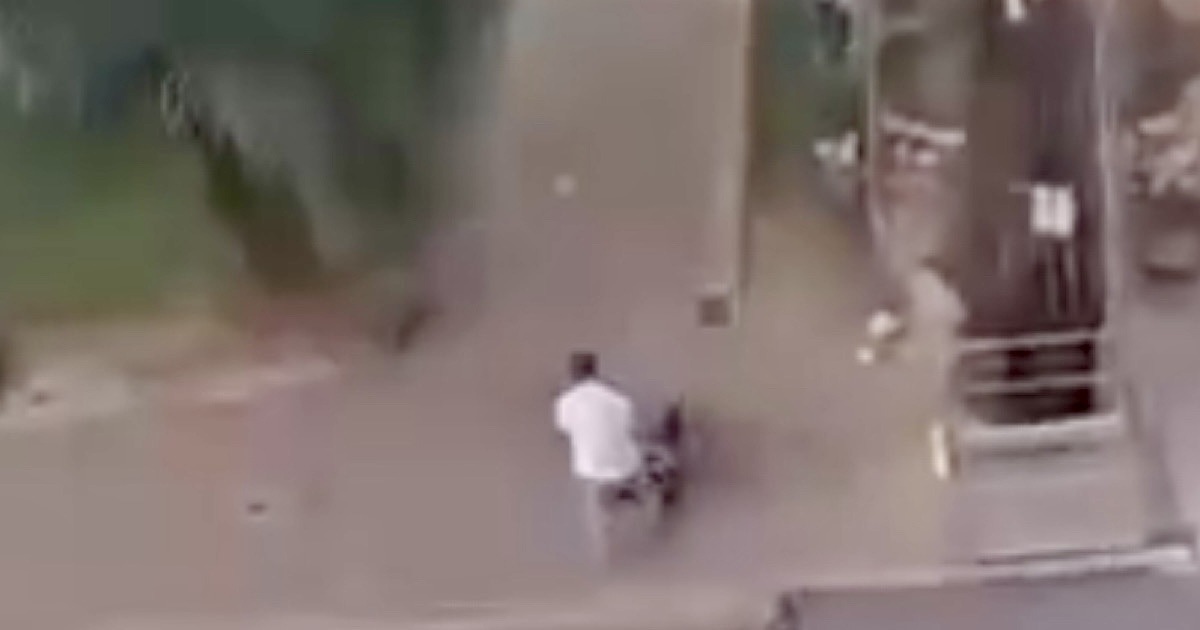 Lkw schiebt Auto auf Motorroller, Biker schwer verletzt