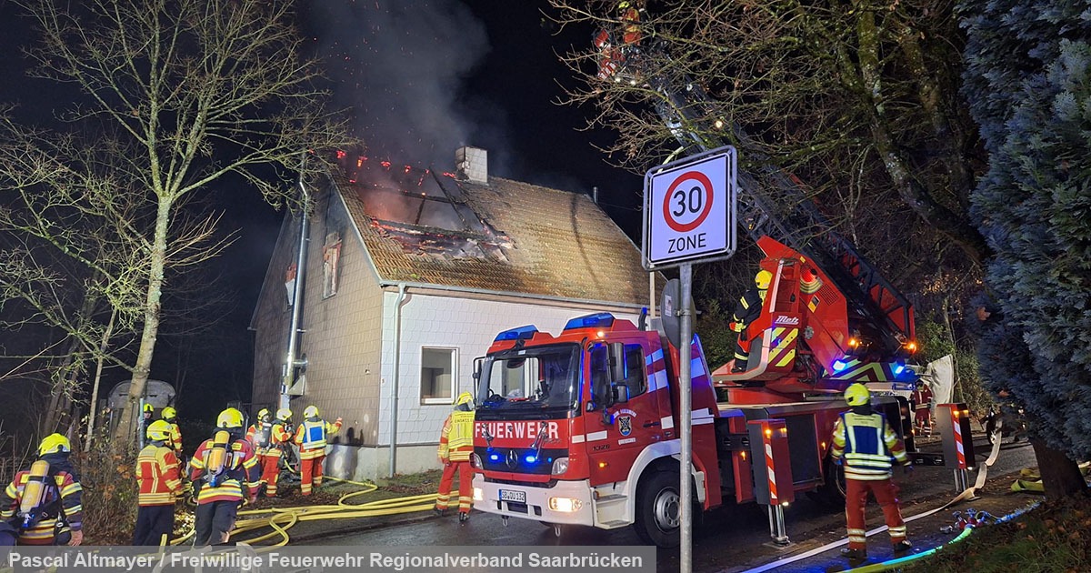 Feuerwehr kämpft die ganze Nacht: Dachstuhl geht in Flammen auf