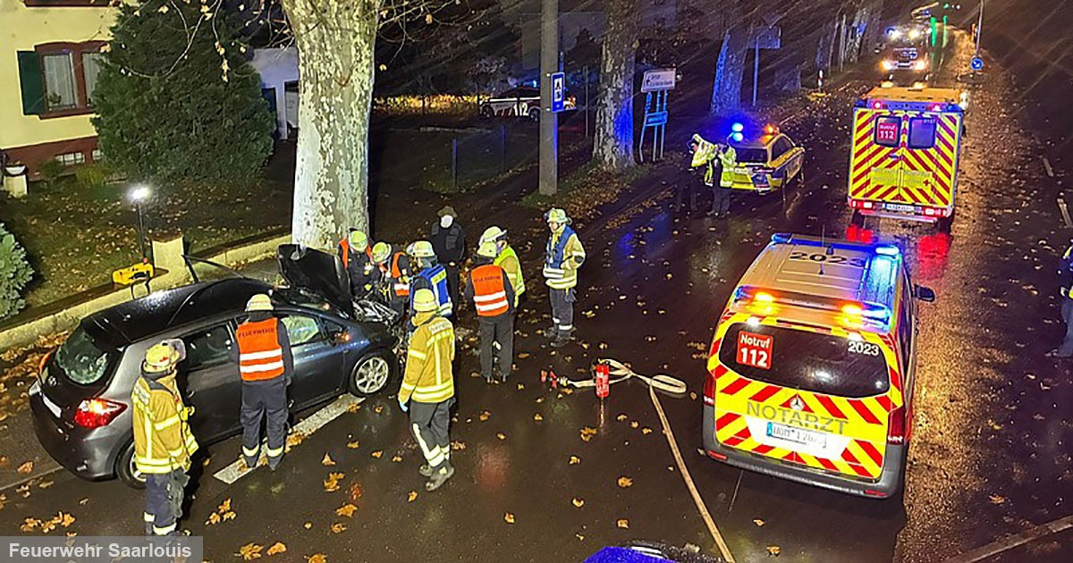 Frontal gegen Baum: Feuerwehr rettet Autofahrer in Saarlouis
