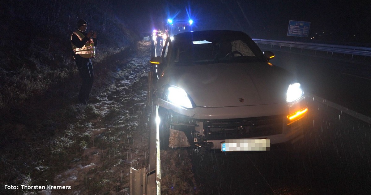 Wegen Glatteis: Frau crasht Porsche auf A1 bei Nonnweiler