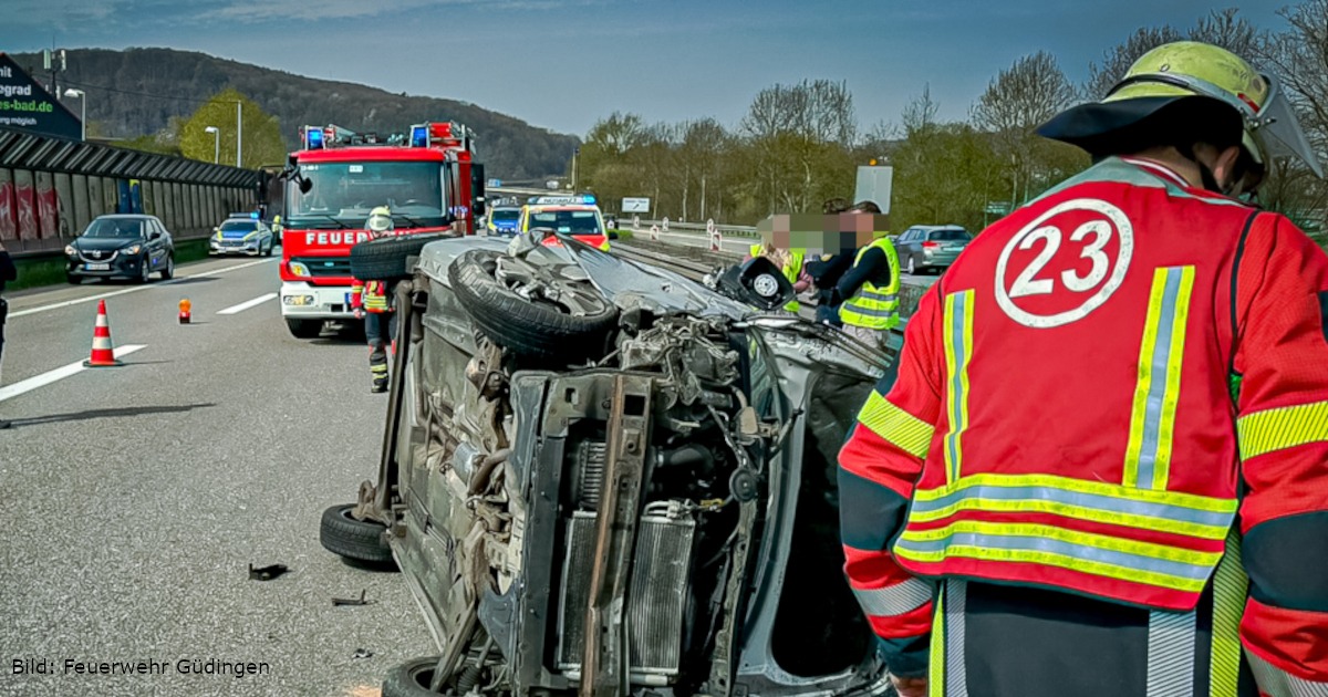 Unfall auf der A6 bei Güdingen: Pkw kippt um – Autobahn voll gesperrt
