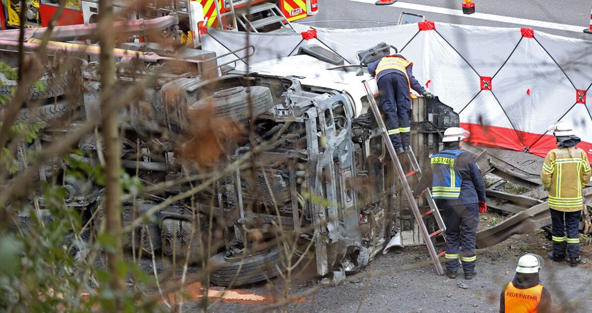 Zudem verteilen sich weitere Steine aus dem geladenen Container des Lkws auf der Fahrbahn, was zu Beschädigungen an weiteren heranfahrenden Fahrzeugen führt. Vor Ort kann aufgrund der Schwere der Verletzungen nur noch der Tod des 55-jährigen Lkw-Fahrers festgestellt werden. Der Mann kommt aus dem benachbarten Frankreich. Viele Zeugen stehen unter Schock und müssen medizinisch betreut werden.