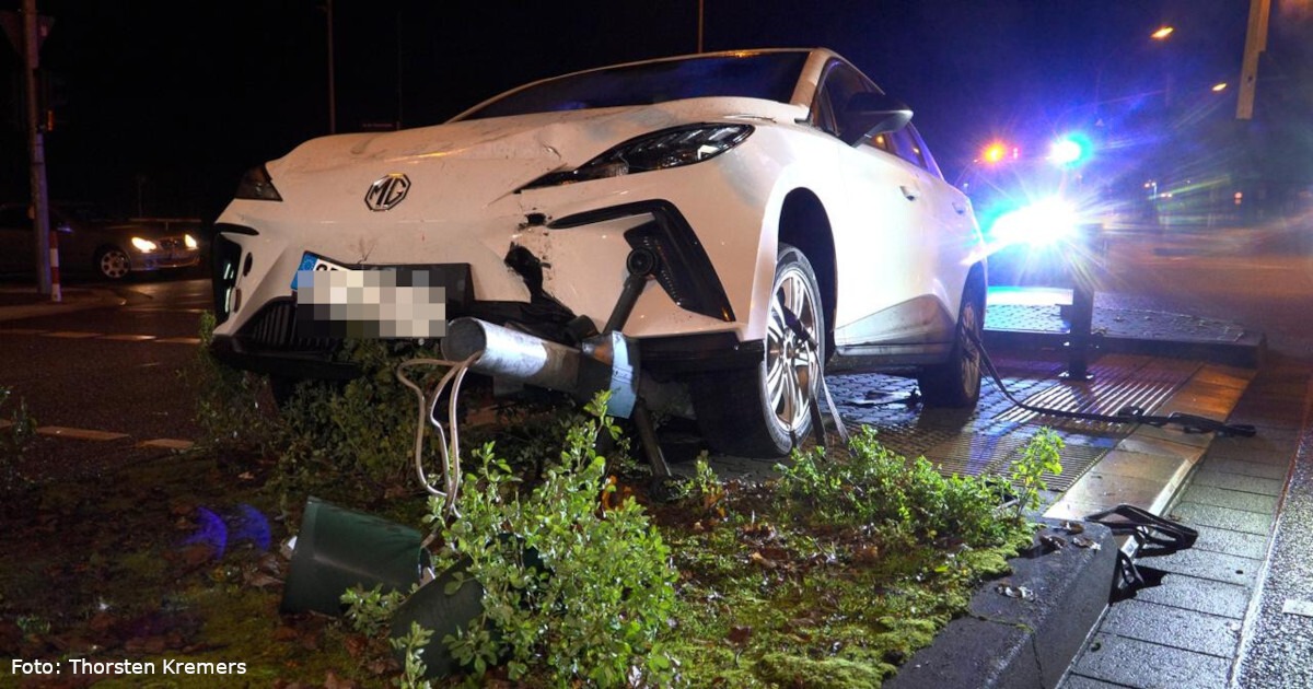 Suff-Crash in der Nacht: MG4-Electric mäht Ampel in Saarbrücken um